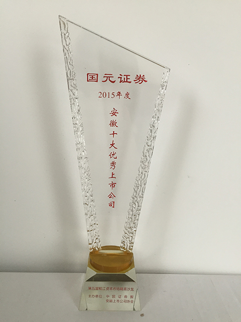 在颁奖典礼上,公司由于在合规经营、利润贡献、股东分红、发展成长、重组并购、产业升级、投资者关系维护及社会责任等方面表现突出,被评为“2015年度安徽十大优秀上市公司”。