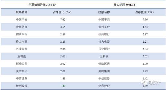 表6:华泰柏瑞沪深300ETF和嘉实沪深300ETF重仓持股对比
