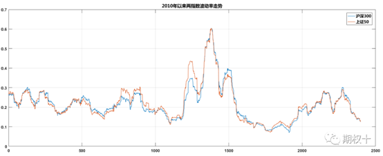 为更好地了解上证50与沪深300之间的关系,我们针对这两个指数的波动率进行了统计分析,两个指数的60日历史波动率走势如下: