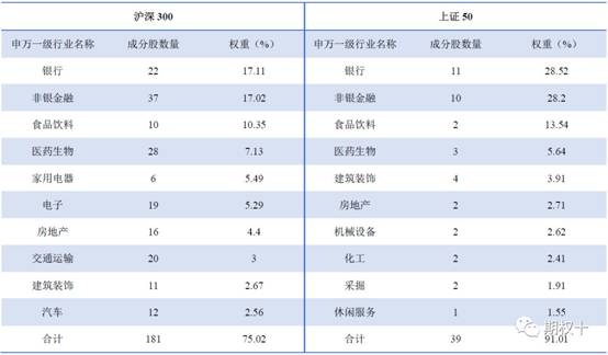 虽然这两个指数的成分股构成较为类似,但也存在一些细微的差别:首先,沪深300成分股来自于上海证券交易所和深圳证券交易所两市的A股,而上证50指数则仅仅选取上海证券交易所的个股。其次,沪深300无论从个股数量、覆盖范围都较上证50更加广泛。其成分股中有54只个股来自中小板、19只个股来自创业板。由此可见,相对于上证50,沪深300的选股范围增加均衡,在兼顾价值性的同时,也涵盖了一些优质的成长型公司。