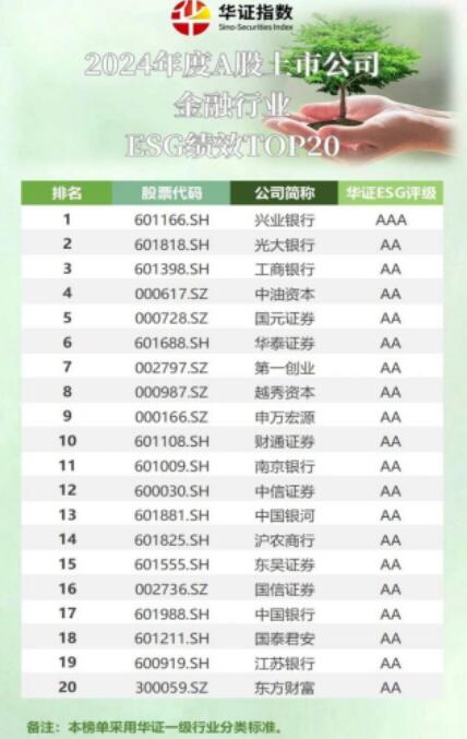 日前,上海华证指数信息服务有限公司(以下简称华证指数)评选出A股全市场ESG表现最佳的100家上市公司,隆重发布“2024年度A股上市公司ESG卓越表现TOP100”榜单。国元证券凭借AA级ESG表现成功入选该榜单,评级位居A股上市券商首位。据悉,此次榜单的发布旨在表彰中国企业ESG优秀实践,宣传ESG治理绩效卓越的上市公司,构建ESG投资生态的正向循环。